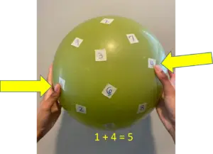 - Write one number on each piece of tape. The numbers on our ball range from 1 to 9.